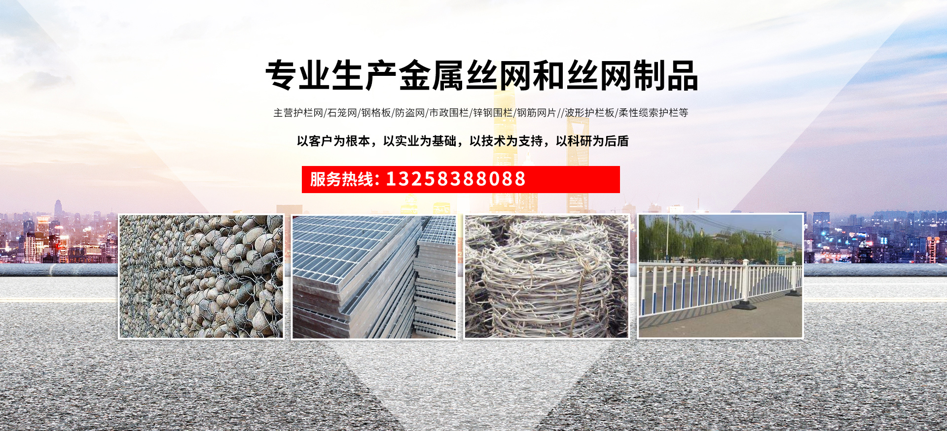成都宏旭金屬絲網(wǎng)制造有限公司主營(yíng)護(hù)欄網(wǎng)系列、石籠網(wǎng)系列、鋼格板、防盜網(wǎng)、市政圍欄、鋅鋼圍欄、鋼筋網(wǎng)片、聲屏障系列、波形護(hù)欄板、柔性纜索護(hù)欄、SNS邊坡防護(hù)網(wǎng)等其他絲網(wǎng)類產(chǎn)品。特殊規(guī)格可加工定做,也可根據(jù)客戶來圖來樣定做。自創(chuàng)業(yè)以來,公司一直堅(jiān)持市場(chǎng)為導(dǎo)向,以客戶為根本,以實(shí)業(yè)為基礎(chǔ),以技術(shù)為支持,以科研為后盾,集科研、生產(chǎn)、經(jīng)營(yíng)為一體,不斷研制開發(fā)新產(chǎn)品,開拓市場(chǎng),走綜合發(fā)展之路。多年來,公司憑借過硬的質(zhì)量,良好的信譽(yù)、優(yōu)質(zhì)的服務(wù)、合理的價(jià)格,贏得了市場(chǎng)和商家的一致好評(píng)。